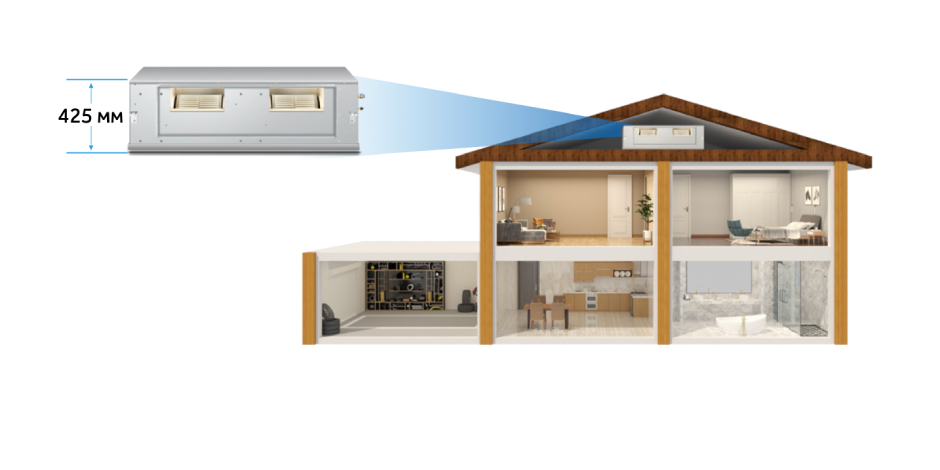 Компактные размеры корпуса позволяют разместить внутренний блок в узких и тесных пространствах.