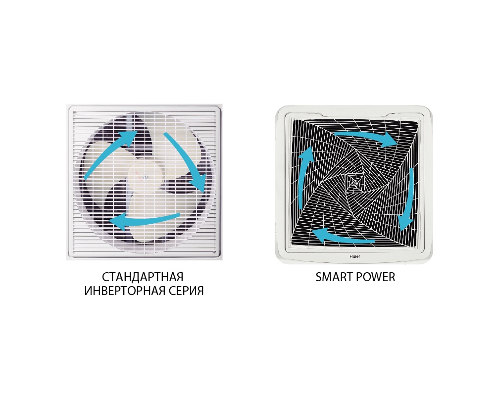 DC-инверторный привод вентилятора потребляет меньше мощности при той же производительности, по сравнению с обычным, неинверторным (AC) приводом.
