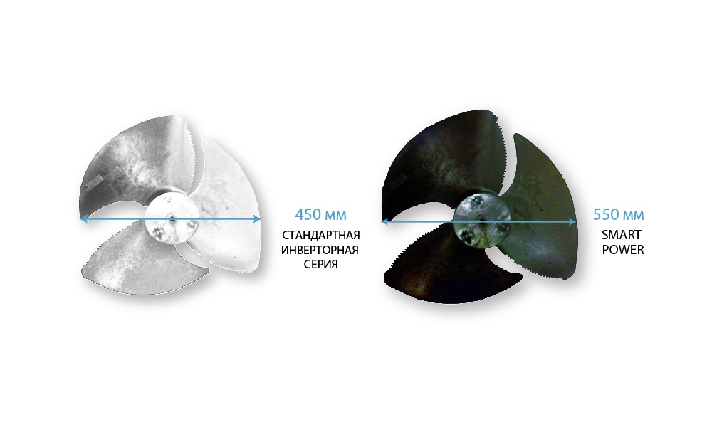 Новая аэродинамическая крыльчатка вентилятора с диаметром 550 мм обеспечивает увеличение расхода воздуха на 16,7%