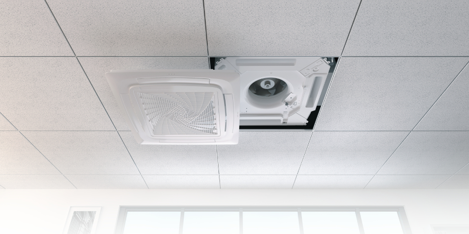 Электрическая секция расположена внутри блока — для технического обслуживания достаточно открыть панель, не вскрывая потолочные плиты. Панель 620×620 мм Новая панель размером 620×620 мм является идеальной заменой стандартной декоративной панели и не закрывает другие потолочные элементы, такие как светильники.