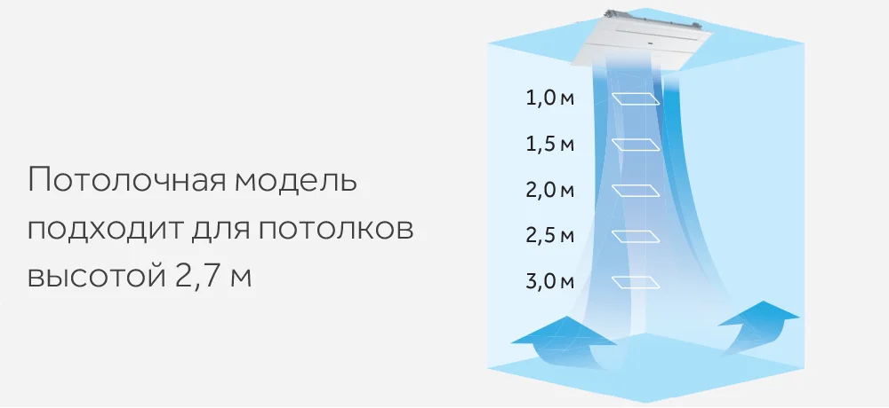 Конструкция для размещения на высоких потолках, воздух достигает земли
