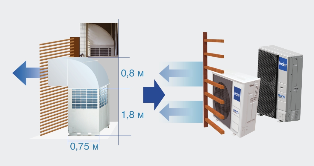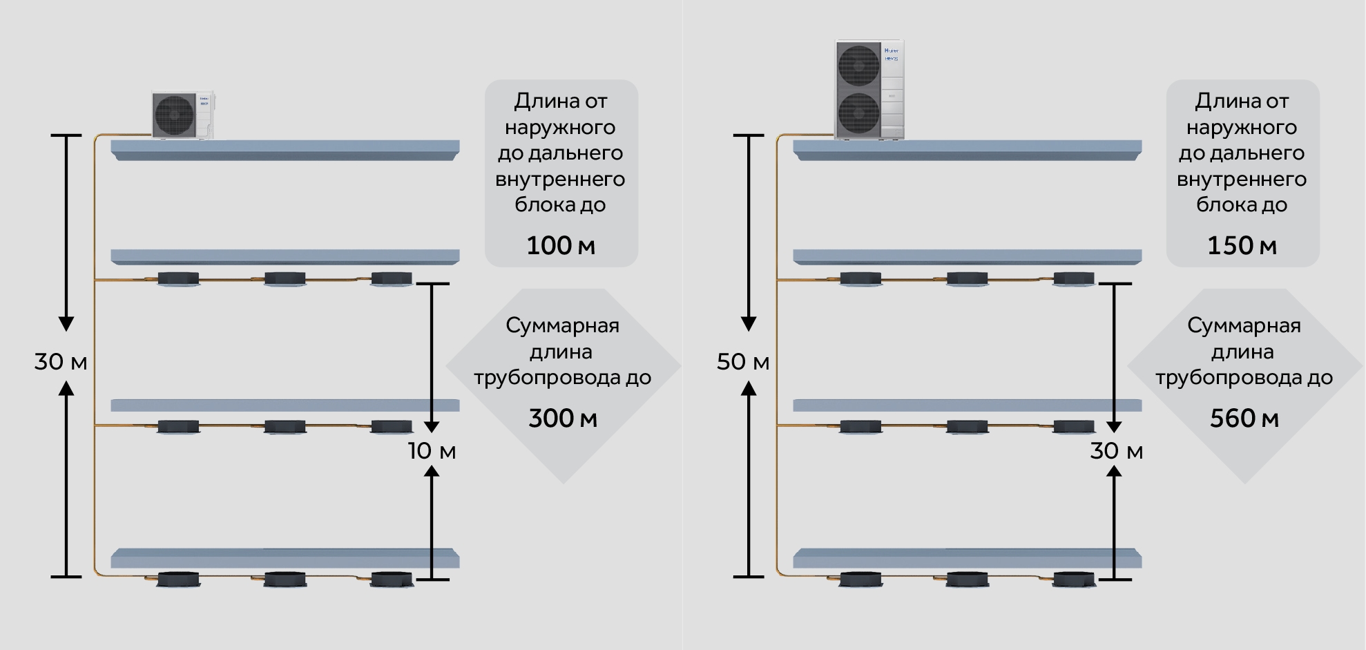 • Возможность установки наружных блоков в два яруса позволяет максимально эффективно использовать монтажное пространство.