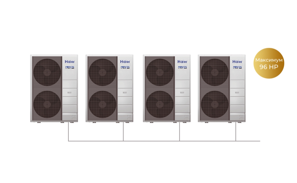 Блоки Haier MRV7S можно комбинировать, при этом самый производительный блок в линейке обладает мощностью 24 HP.