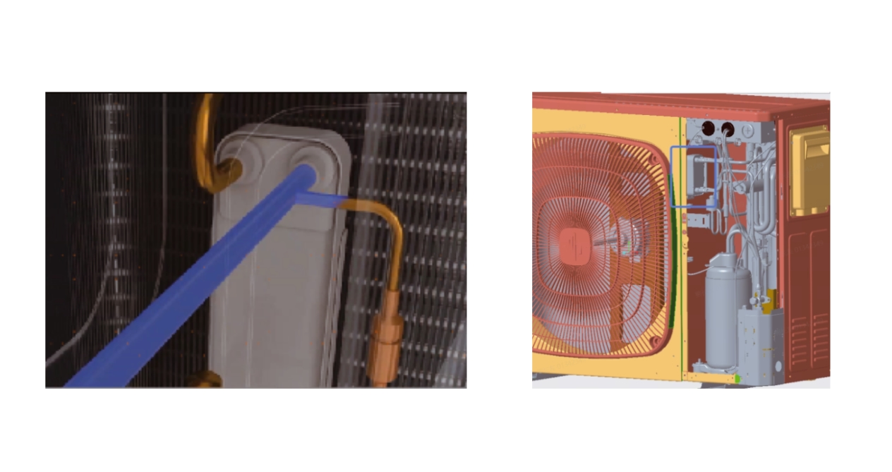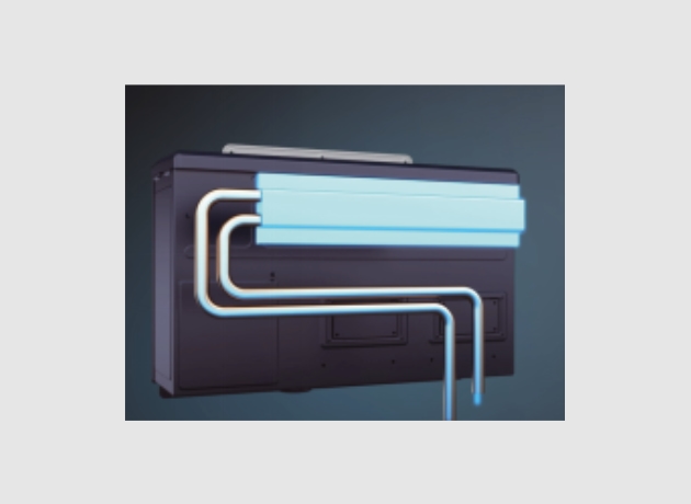 Наружный блок с двухступенчатой системой переохлаждения и показателем переохлаждения до 20 К значительно улучшает холодо- и теплопроизводительность, сокращает потери давления хладагента в системе и повышает эффективность ее работы.