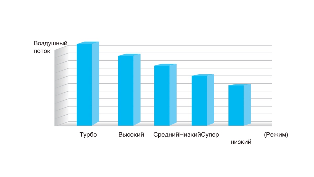 Режим Турбо обеспечивает высокую скорость подачи воздуха для ускорения достижения заданной температуры.