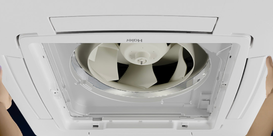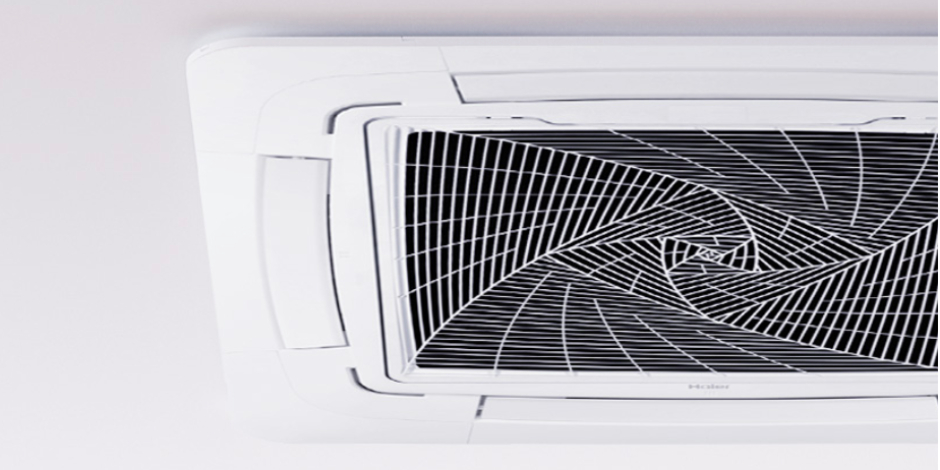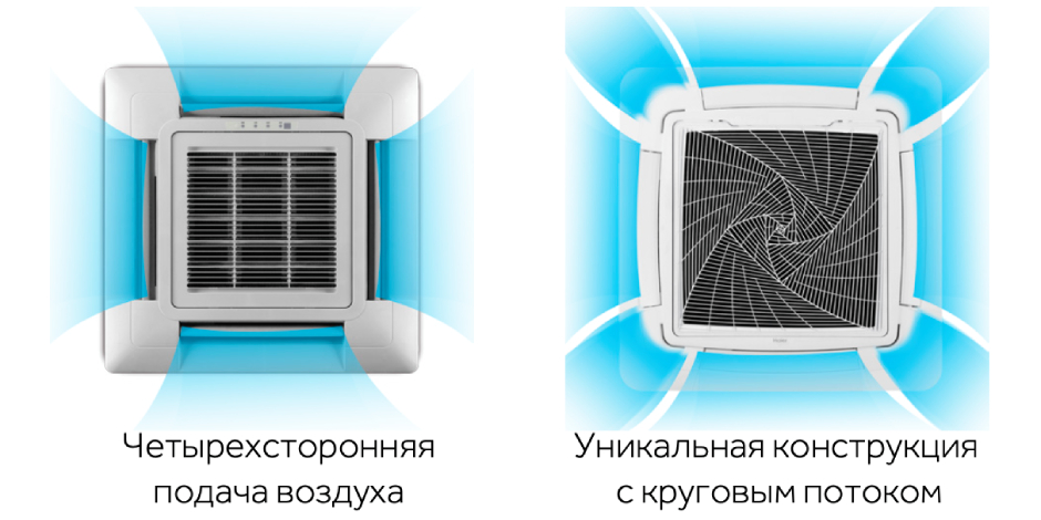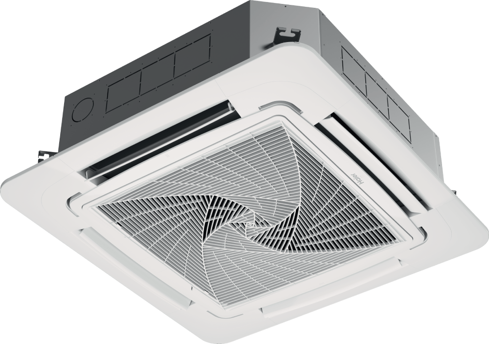 Отличительной особенностью кассетных блоков Haier является «спиральный» дизайн воздухозаборных решеток.