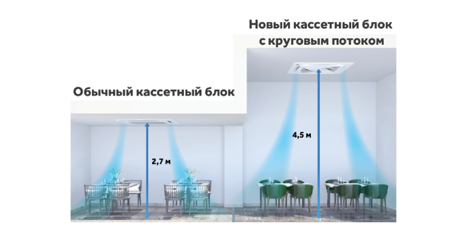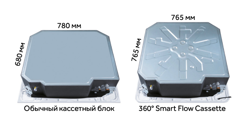 Кассета с интеллектуальным потоком воздуха на 360 градусов имеет особую конструкцию со скрытым LED-дисплеем, который наглядно отображает температуру.
