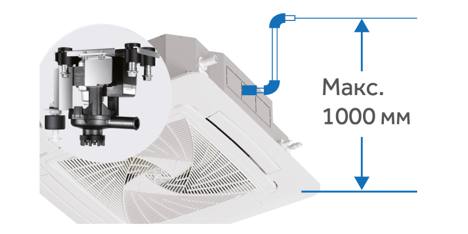 Встроенная дренажная помпа обеспечивает подъем конденсата на высоту до 1000 мм.