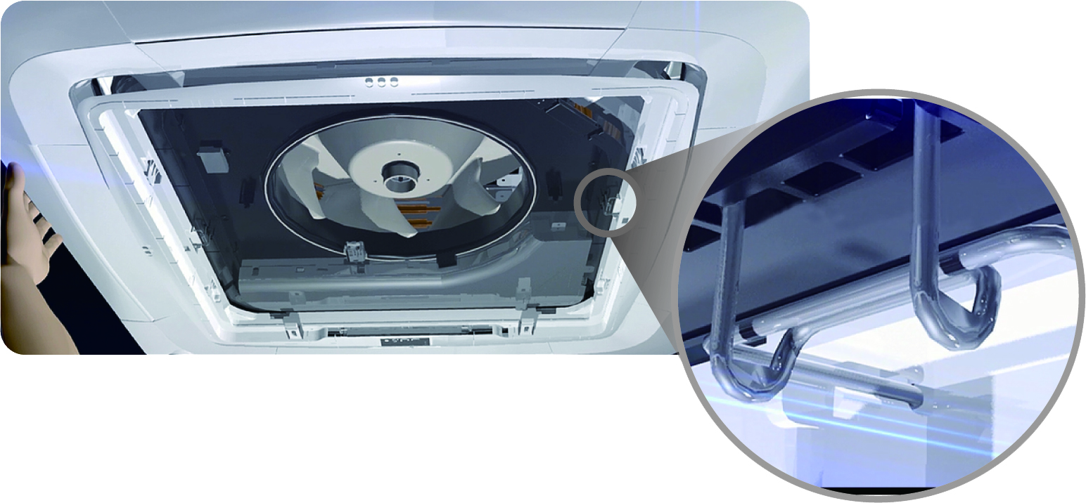 Внутренний блок оснащен специальным каналом подмеса свежего воздуха, который может быть соединен с системой вентиляции.