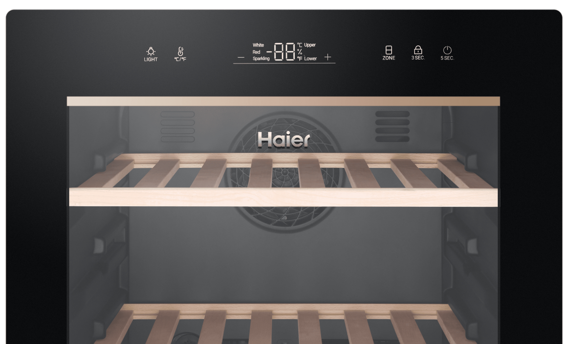 Винные шкафы Haier с двумя температурными зонами позволяют одновременно хранить красное и белое вино. Так, в одной зоне можно хранить красные вина при температуре 13-20 градусов, другая зона предназначается для хранения белых вин при температуре 9-12 градусов. Температурные зоны могут также использоваться для хранения игристых вин при температуре 5-8 градусов.